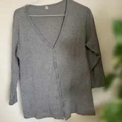 落ち着いたネイビーカラーで、きれいめにもカジュアルにも合わせやすいシンプルなデザインです。七分袖なので季節の変わり目にも使いやすい一枚です。
