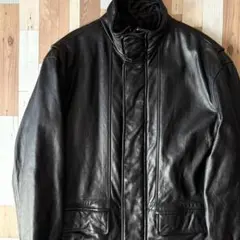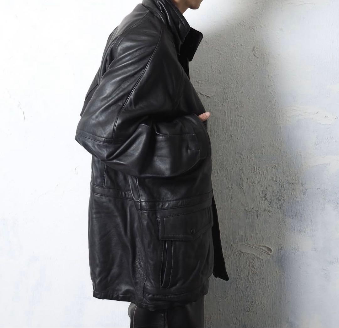 ブラックのダブルジップレザーコート、XLサイズ、カジュアルスタイルに最適。
