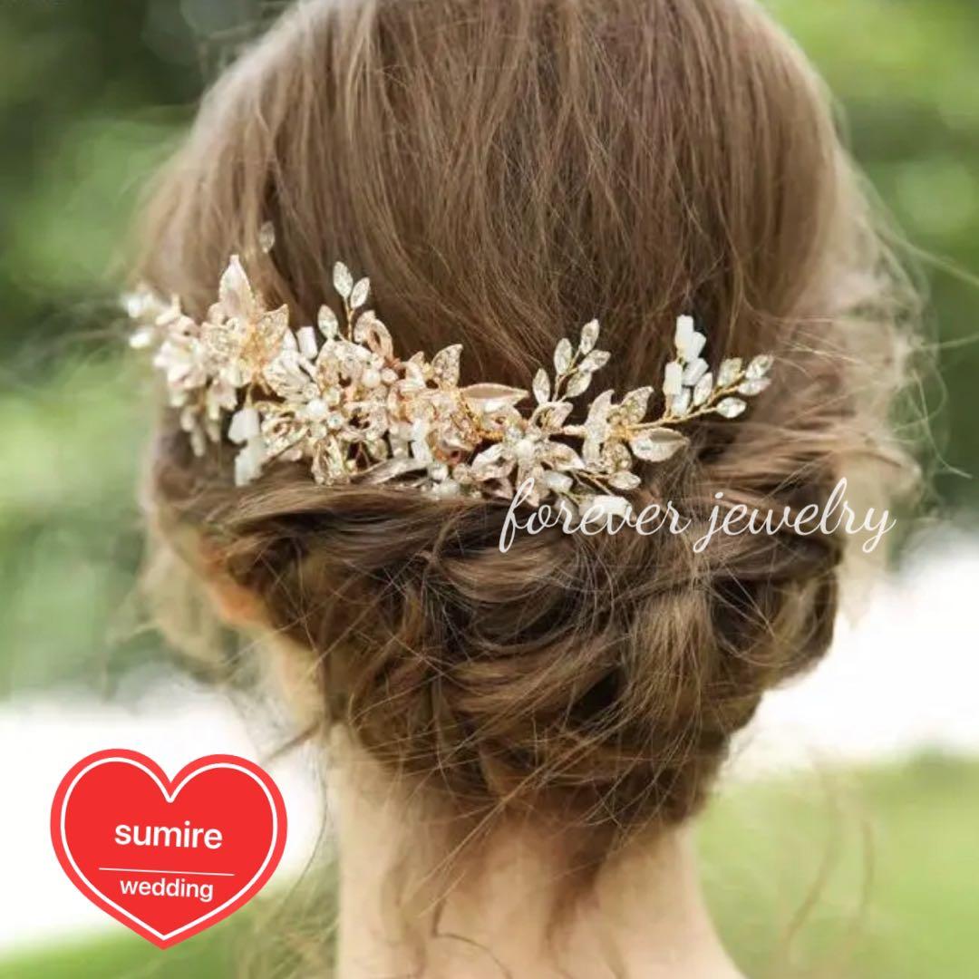 リーフとパール お花をワイヤーで仕上げ清楚で可憐な花嫁さまを演出します