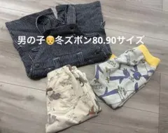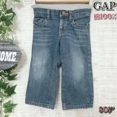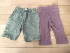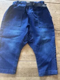 デニム素材のウサギ刺繍入りパンツ、ゴムウエストで快適な着用感。