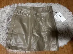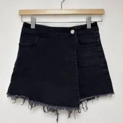 ダークグリーンのラップスタイルミニスカート、ウエスト64cm。