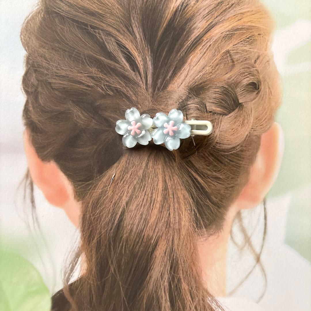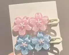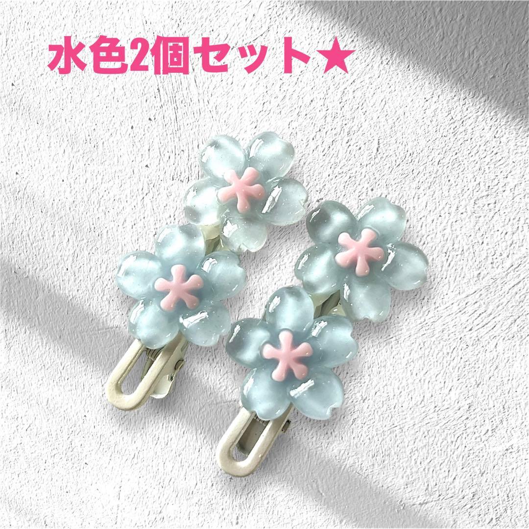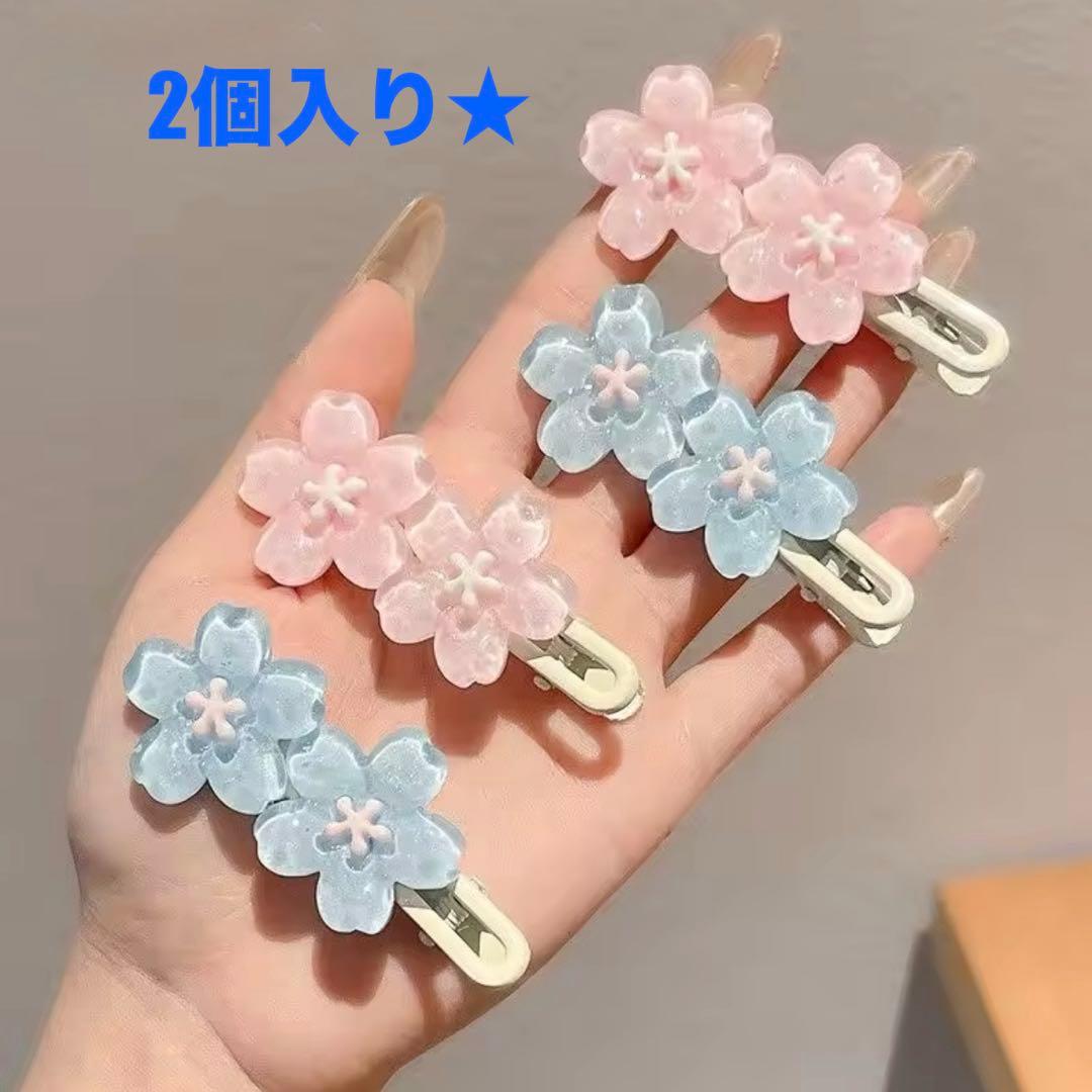 うるちゅるヘアピン2個セット キラキラヘアピン 桜ヘアピン 可愛いヘアピン青2個