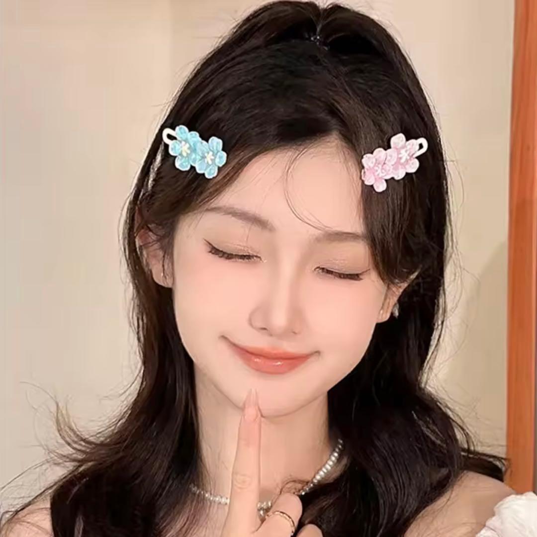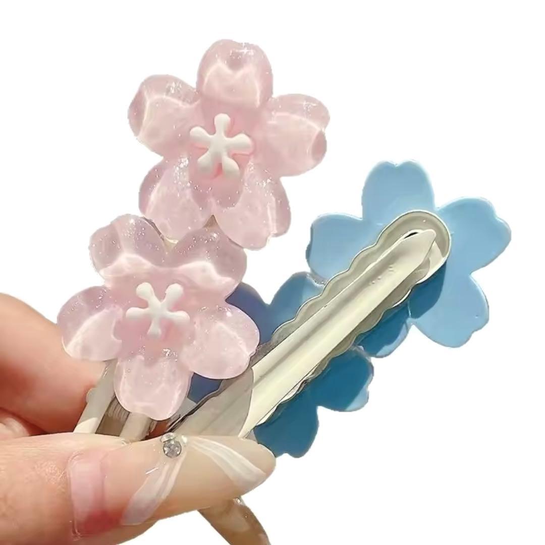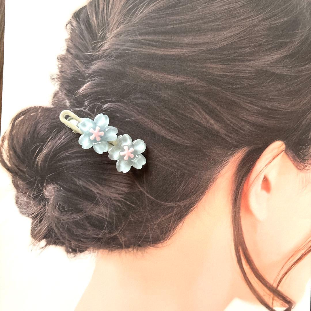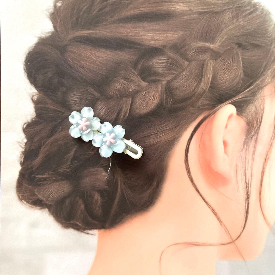 うるちゅるヘアピン2個セット キラキラヘアピン 桜ヘアピン 可愛いヘアピン青2個