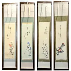 掛け軸 暁春 四季の花 絹本 希少 軸装 茶道具 掛軸 美品 です。