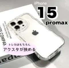 iPhone 15 Pro Max用の透明なファッションケースで、スタイリッシュなデザインが特徴。