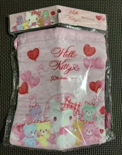サンリオキャラクターズの可愛い収納袋、ピンク色のデザイン。
