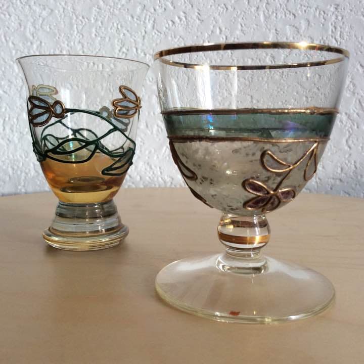 ステンドグラスの要領で描かれた草花がとてもステキなハンドメイドのグラスセットです。