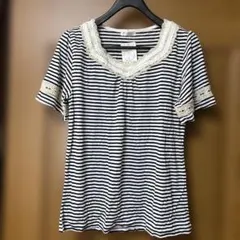 axes femme 薔薇ボタン トップス デニム 編み上げリボン オフショル