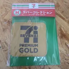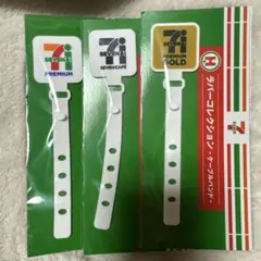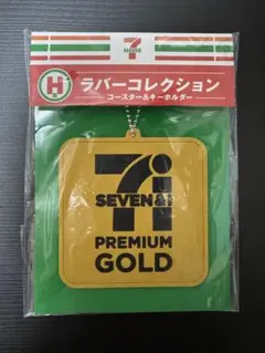 セブンイレブンのロゴデザインのキーホルダーセット、ホワイトとゴールドのカラーが特徴。