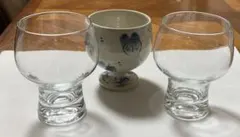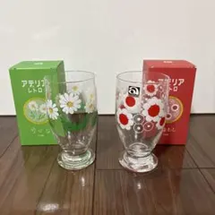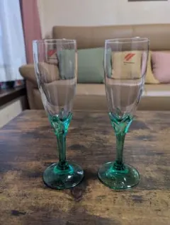 クリスタルガラス製の花柄彫刻グラス2個セット。