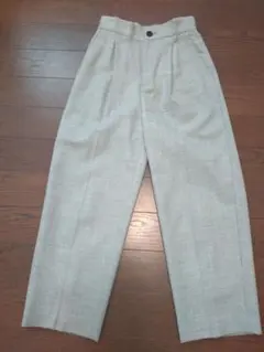 細かなストライプ柄がスタイリッシュなワイドパンツです。