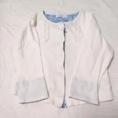 なめらかでほんのり艶のある女の子用レーシーニットカーディガンです。