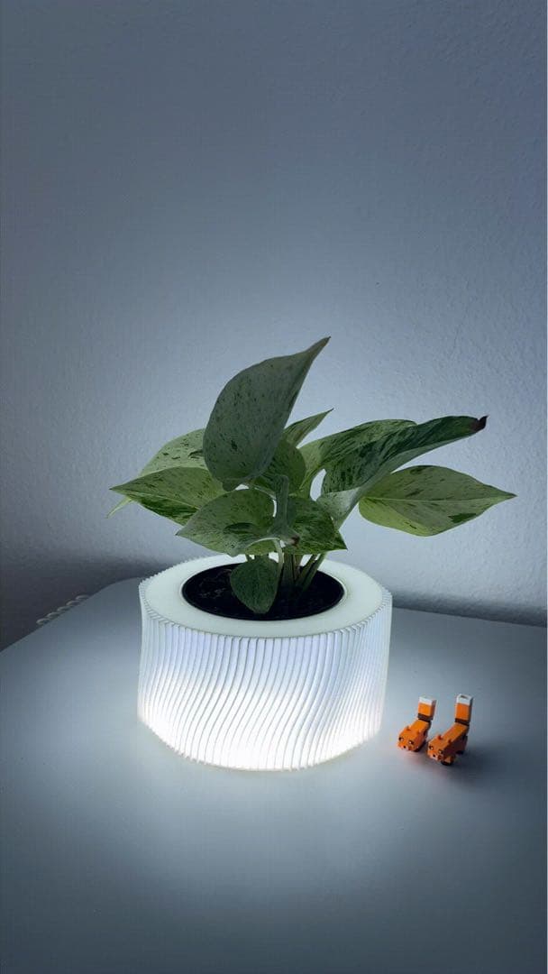 LEDライト付きの円形プランター、ポトスに最適。