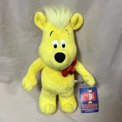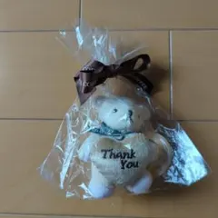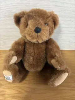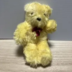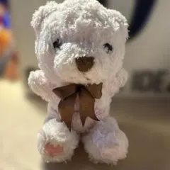チェックのリボンと足裏が特徴のくまのぬいぐるみです。