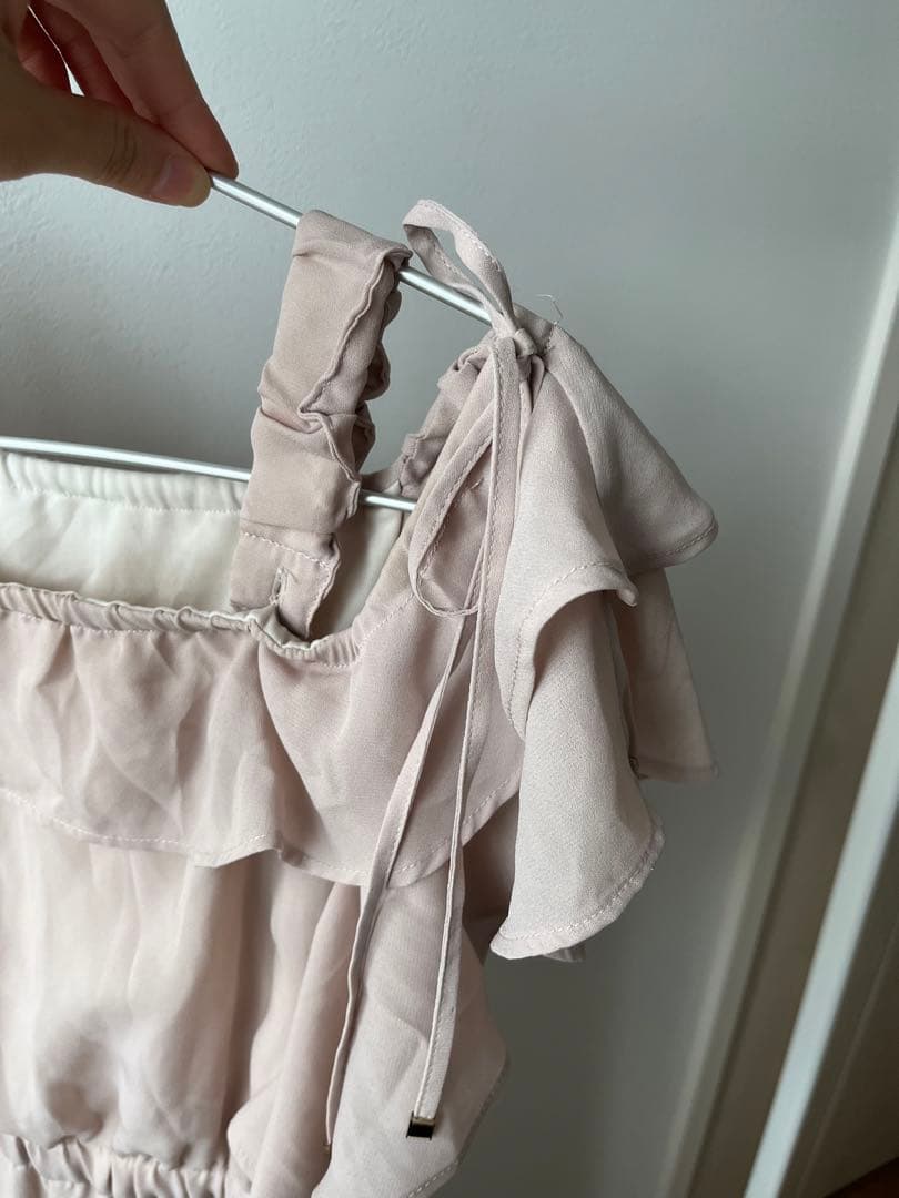 たくさんのフリルと肩にあしらったリボンがフェミニンな、乙女心くすぐる1枚。サラリとした生地感がフレアなシルエットにマッチして、爽やかで涼しげな印象です。オフショルダーでも着られる2WAYタイプなのも嬉しいポイント。シンプルなカラーリングはどのアイテムとも相性よく、様々なコーデを楽しめます。
