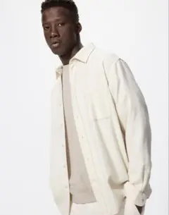 +J(ジル・サンダーコラボ)のバンドカラーコットンシャツ/ミニマルで洗練されたデザイン/計算されたオーバーサイズシルエットで抜け感のある着こなしに/カジュアルからキレイめまで万能/春秋にぴったりの軽やかなコットン素材/メンズライクな雰囲気でユニセックスにもおすすめ/シンプルで一枚着でも羽織りでも◎