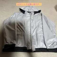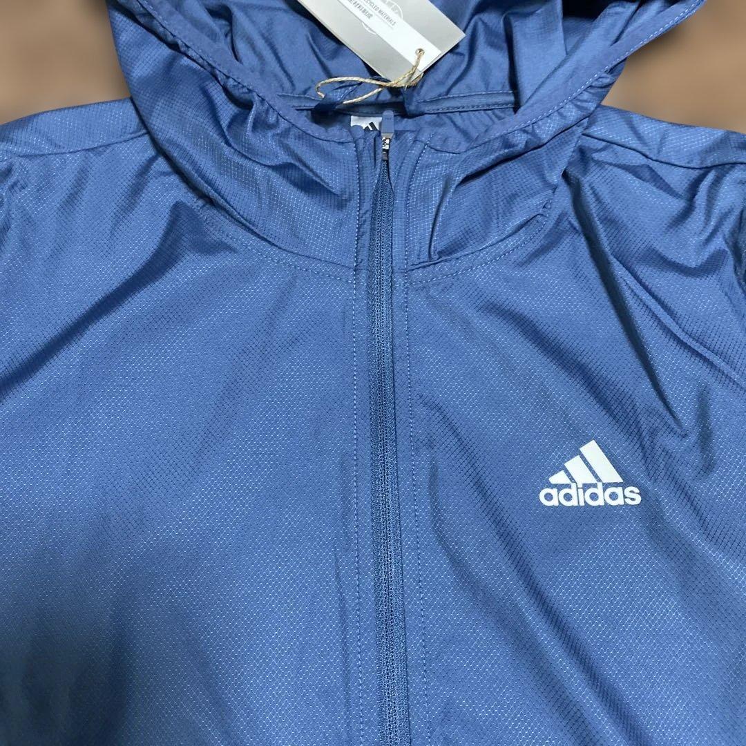 軽量でフード付きのadidasの青いウィンドブレーカー