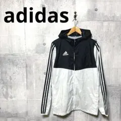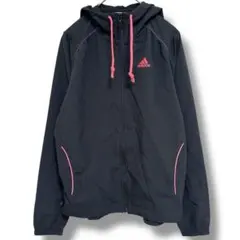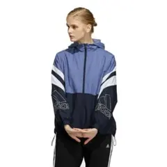 adidas フード付きウィンドブレーカー 青3番線デザインレディースSサイズ