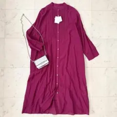 ふんわりと広がるロング丈のシルエットで、上品で大人っぽい雰囲気があります。リネン混素材で、程よいハリ感とナチュラルな風合いが魅力です。バックボタンがシンプルながらもさりげないデザイン性のあるワンピースです♪