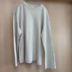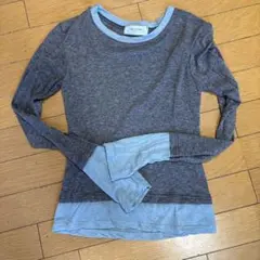 ネック部分がレース仕様のブルーグレーのカットソー。首後ろのボタンもポイントです。タグ付き新品・自宅保管品です。