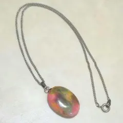 明るい服にも、暗めのカラーの服にも映えるネックレスです。大ぶりですが穴があるので程よい存在感です。プラスティックですので重くないです。