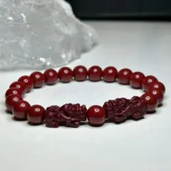 シナバー(朱砂)(辰砂)ブレスレット 赤いビーズ龍彫刻ブレスレット