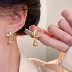 【未使用】ピアス ピンクゴールド 花 かわいい