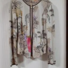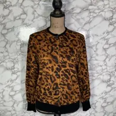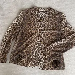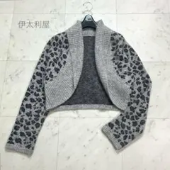 伊太利屋 GKITALIYA ジャングル ヒョウ柄 ハーフジップ ニット プルオーバー グレー M ラインストーン
