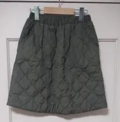 UNIQLOのネイビーのドット柄スカート、コットン素材で快適な着心地。