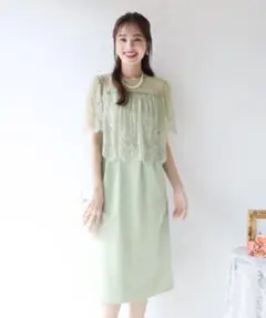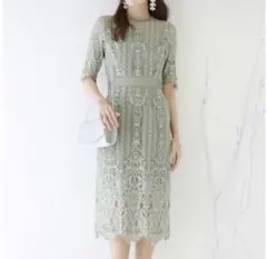 ロングドレス ミモレ丈 ミント くすみカーキ ピスタチオカラー グリーン オールレース Iライン