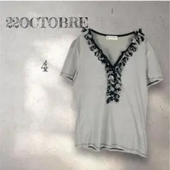 白と黒とラメ入り、ストライプデザインのVネックTシャツ、パフスリーブ付きでスタイリッシュ。