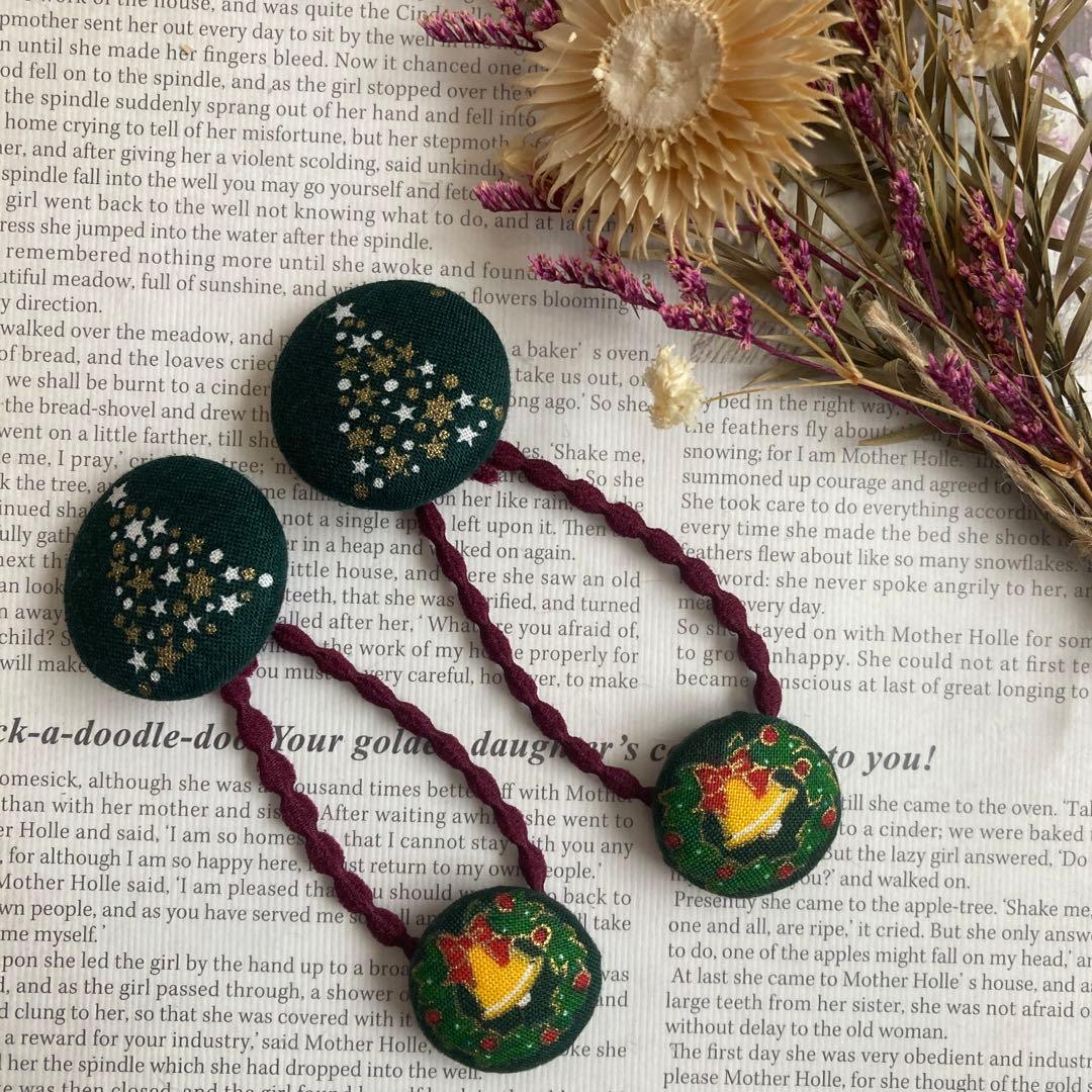 クリスマスくるみボタンヘアゴム 2点