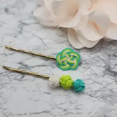 ハンドメイド 水引髪飾り ヘアピン uピン