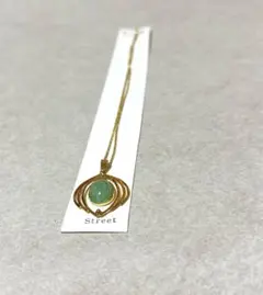 天然石の緑色ペンダントが特徴のゴールドチェーンネックレス。