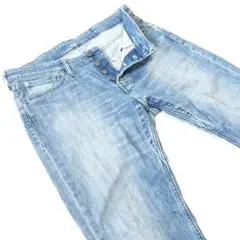 バックポケットに特徴的な刺繍が施されたライトブルーのストレートデニム。