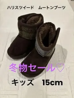 ハリスツイード マジックテープ ムートンブーツ 15cm ボア キッズ