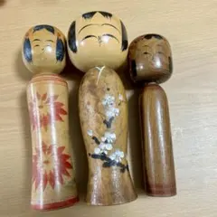 木製こけし人形 3体...