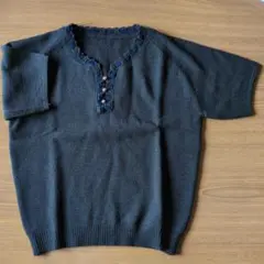 全体的な色褪せ、ヨレ、毛玉があり、首元の伸びもあります。着用は可能ですので、デザインがお好みの方いかがでしょうか?