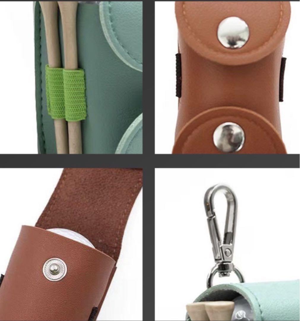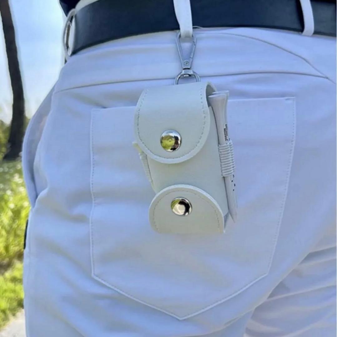 ゴルフボール2個収納、サイドにティー2本と反対側に更に2本もしくはホークを刺すことも可能です。