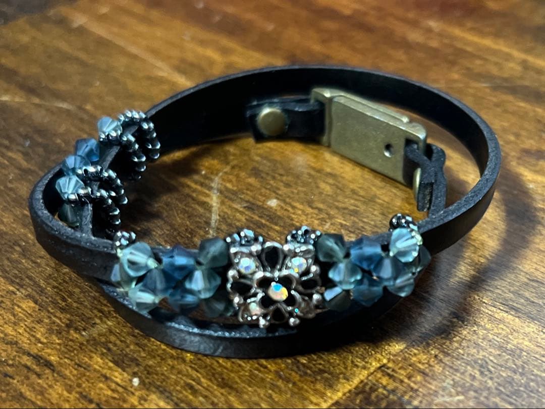 レザー ダブルブレスレット ビーズ 花 未使用 になります。