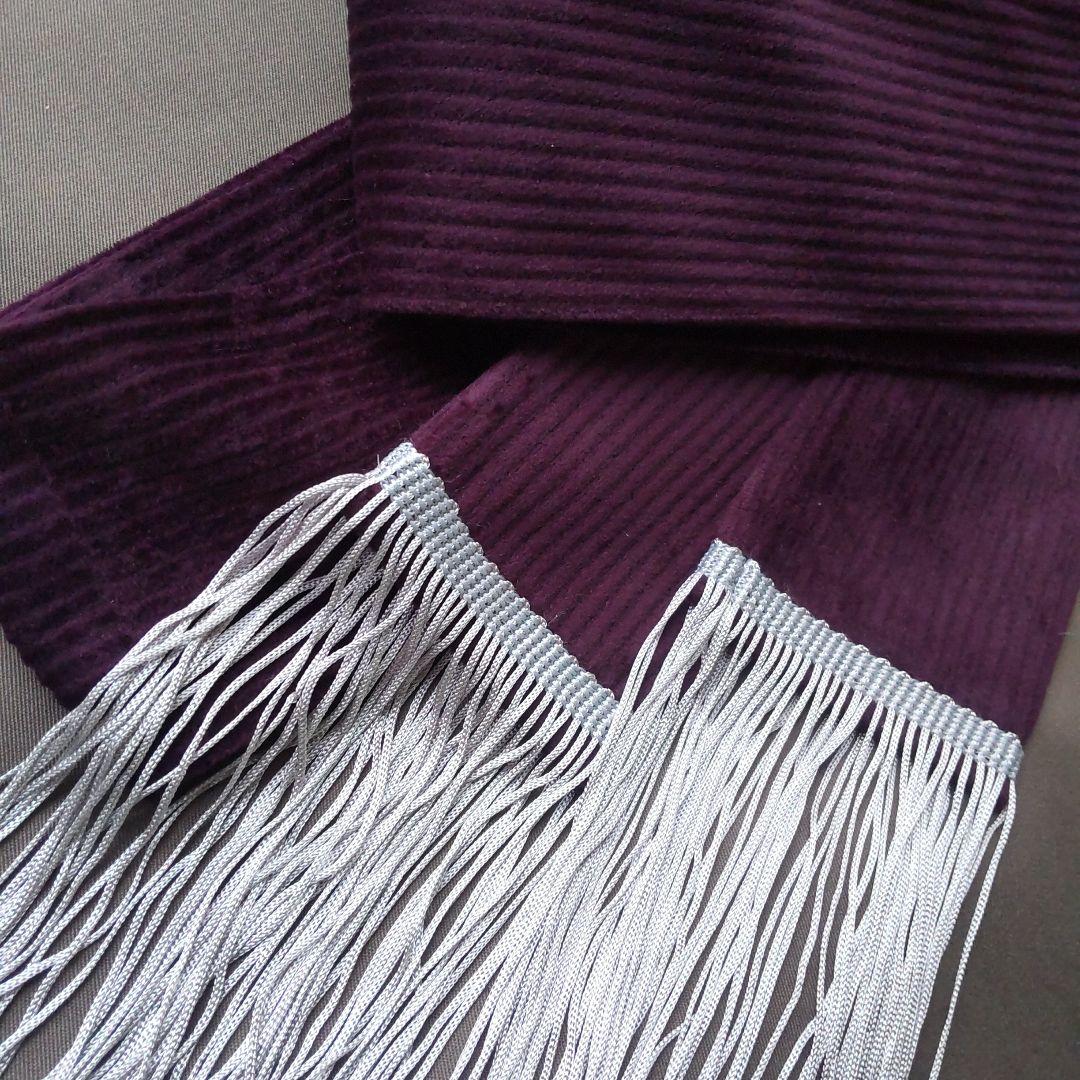 濃紫の別珍(コーデュロイ)生地より長尺のしごき帯を作りました。しっかりした高級感ある落ち着いた色味の生地です。フリンジは長めのシルバーです***