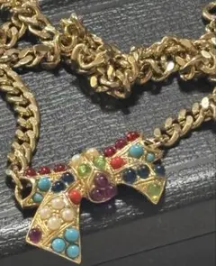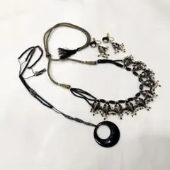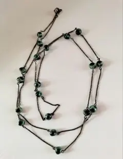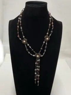 黒とゴールドのビーズでデザインされた多連(23本)ツイストネックレスです。太さがあり、首元・胸元のポイントになると思います。