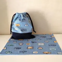 ハンドメイドのランチョンマットと給食袋のセットです。