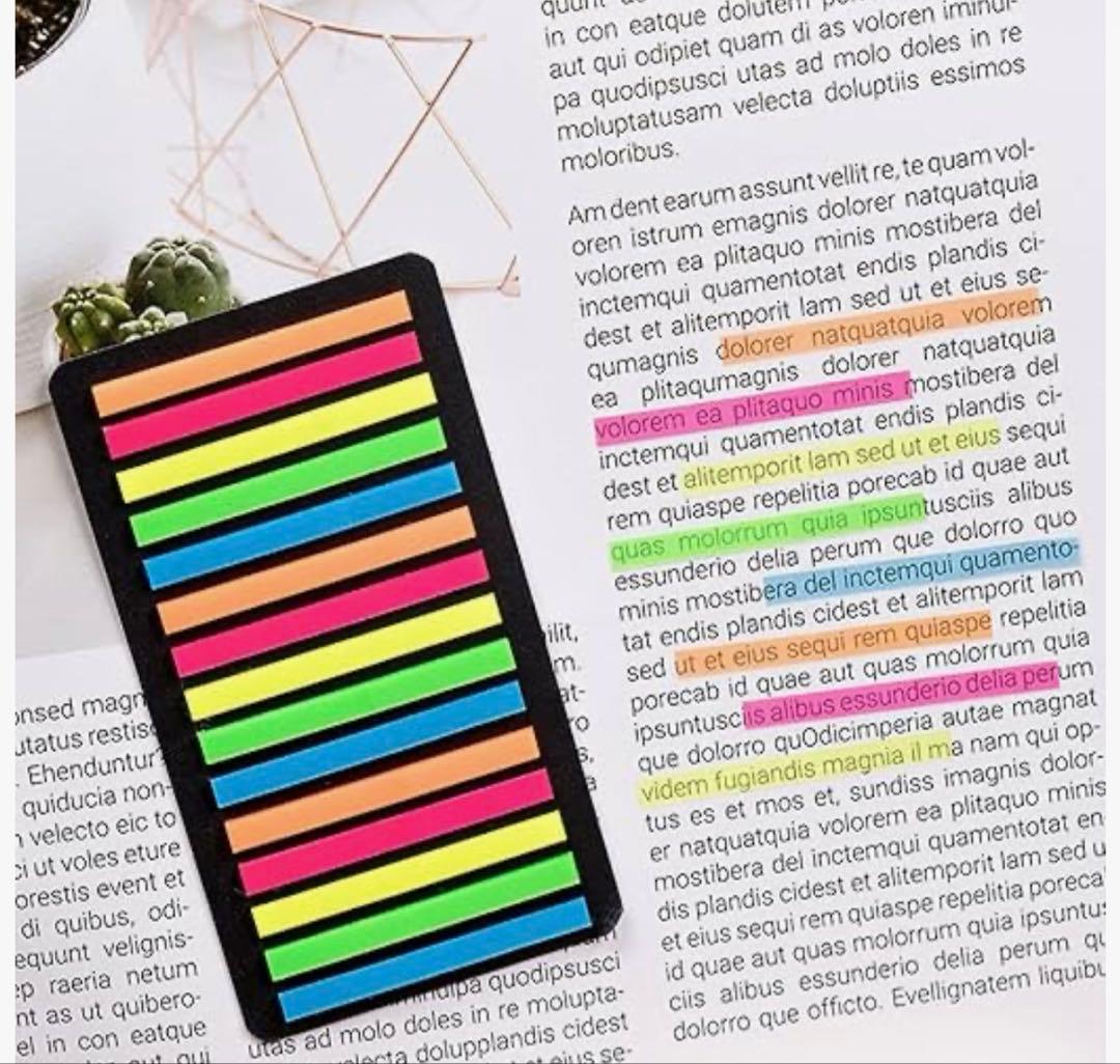 マーカーとして、テキストなどにはって剥がせる極細カラフルな付箋です。