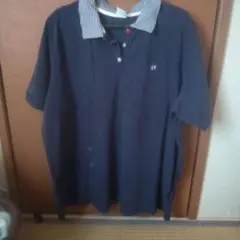 ジッパー付きネイビーのコットン100%ポロシャツ