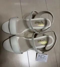 Liberty Doll 7cm チャンキーヒール アンクルストラップ サンダル M(23.5cm)ホワイトグレー