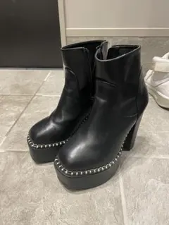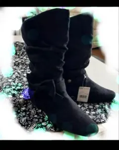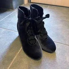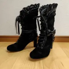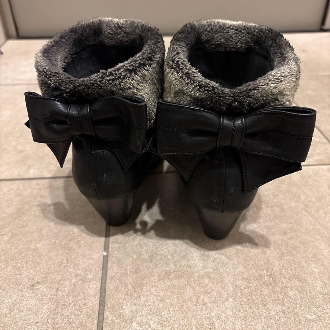 ご覧いただきありがとうございます!黒のフェイクファー付きヒールブーツです。後ろにリボンもついてます。