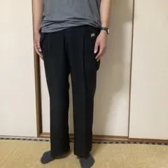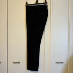 シンプルな黒のスラックス、カットオフ裾デザインでスタイリッシュ。