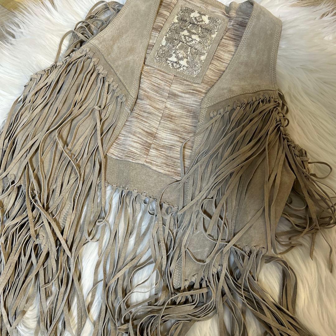 ※詳細は後ほど、、、(フリンジセットアップ、ベージュ、フリンジベスト、フリンジショートパンツ、ショートパンツ:Sサイズ、フリンジ、本革、豚革、スウェード、y2k、archive、特記すべき傷や汚れなし)