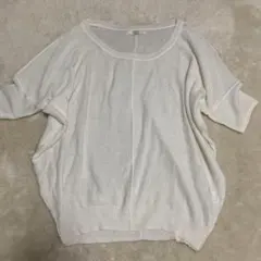 コットン100%のホワイトニット、Vネックデザインでカジュアルに最適。